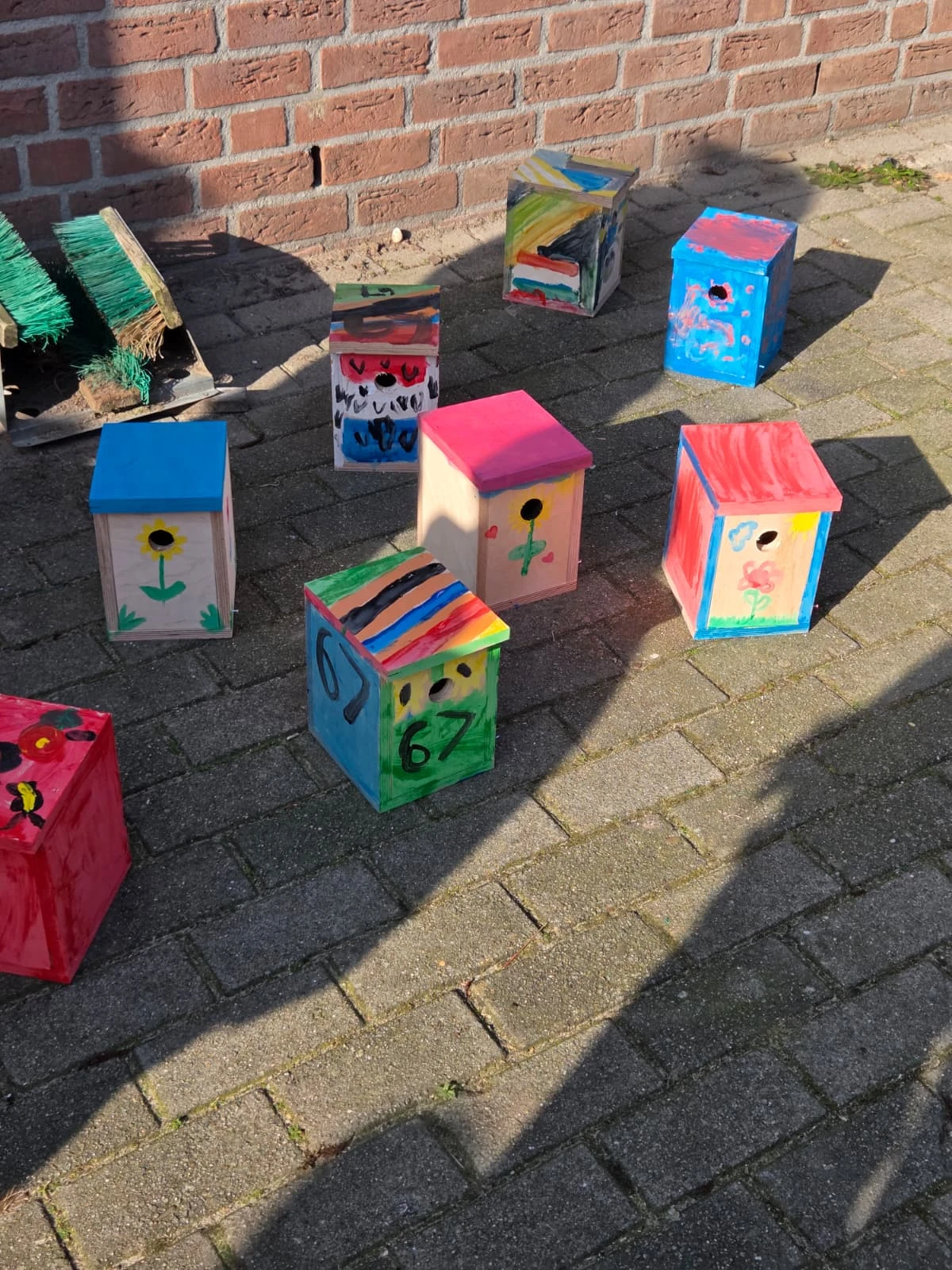 Daarna konden ze aan een grote tafel vol verftubes en kwasten houten vogelhuisjes beschilderen. Er kwamen al snel prachtige ontwerpen uit. Later in het jaar worden deze huisjes tijdens een open dag van het dierenasiel verkocht, om geld op te halen voor o.a. de verzorging van de dieren.